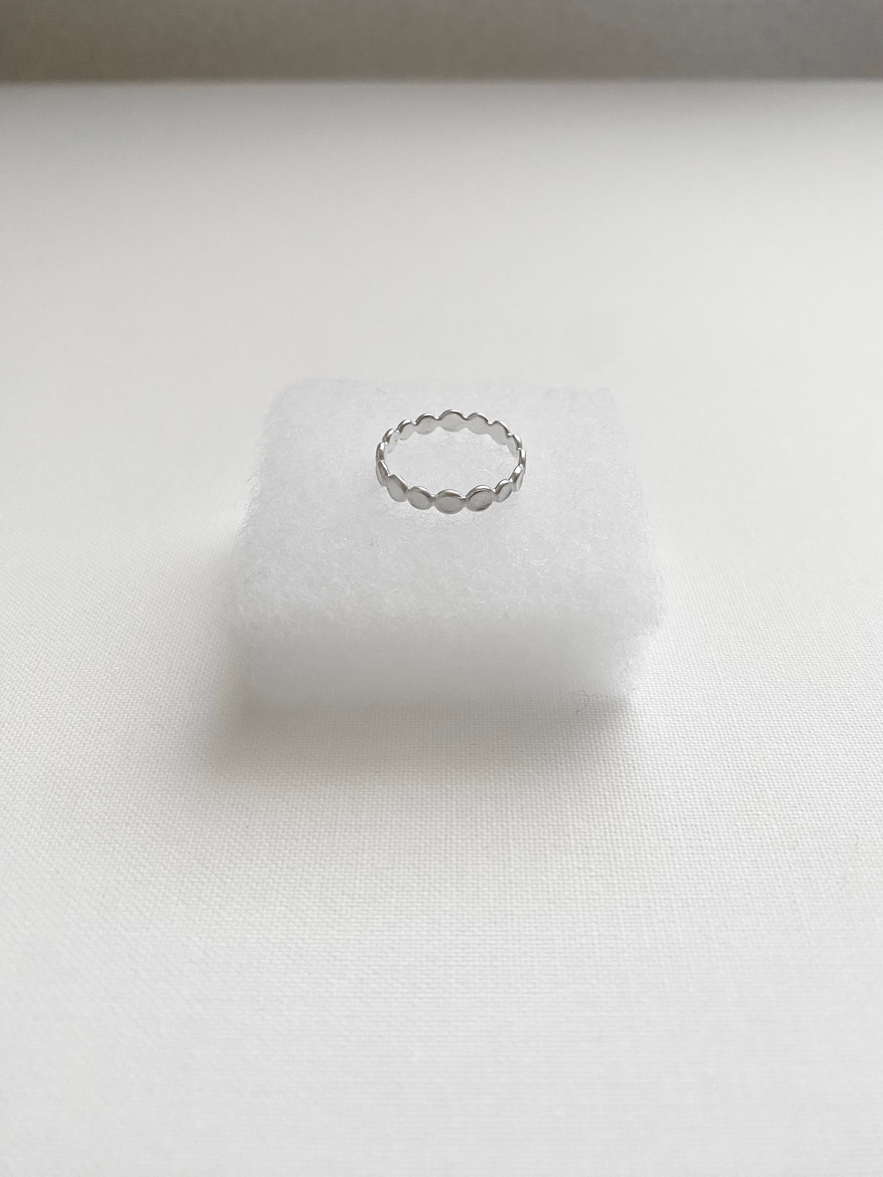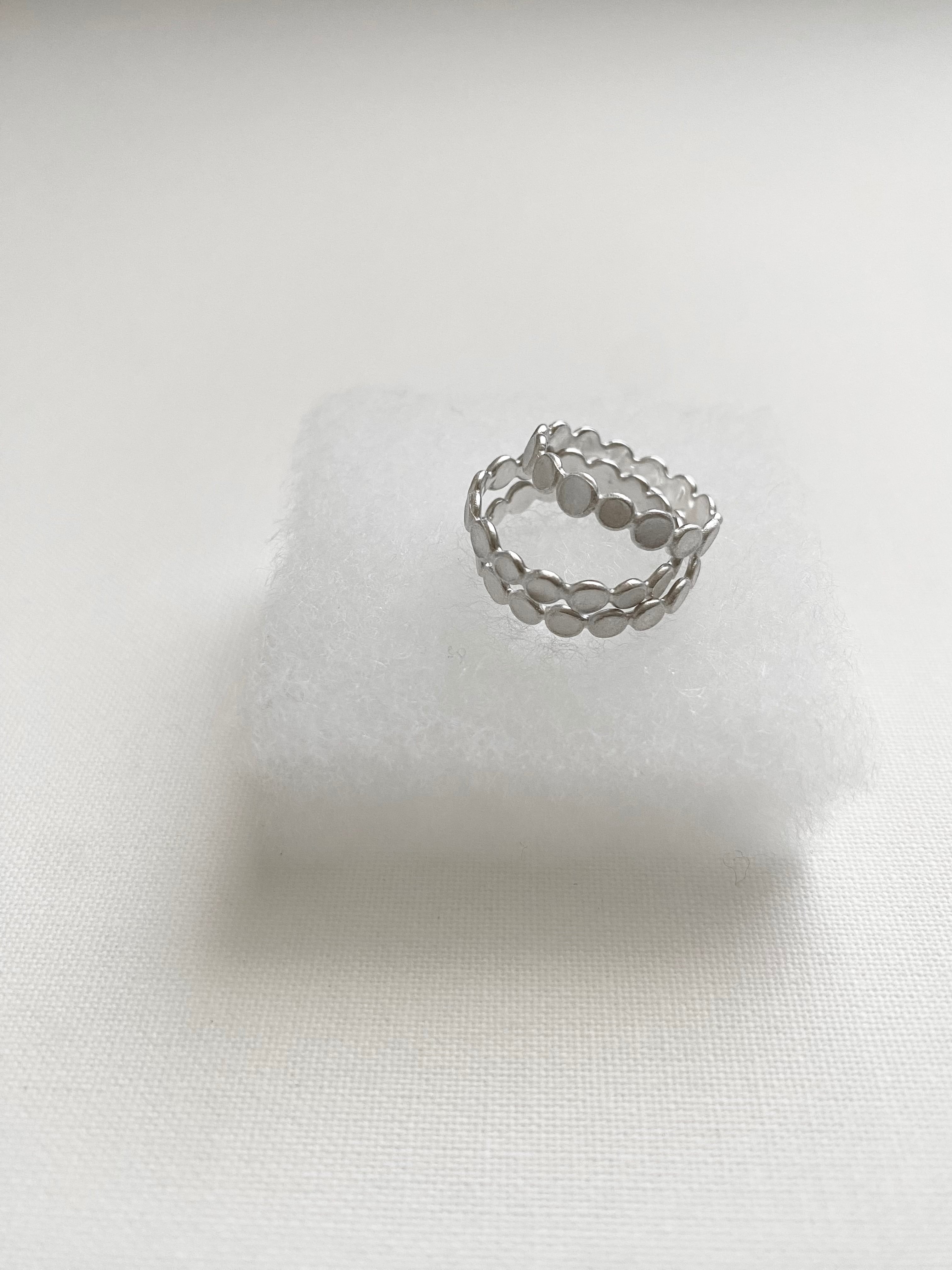 遊び心あふれるデザインのこの粒粒 ringは、あなたの指元に華やかさを添えます。手仕事で仕上げられた一品で、粒が繊細に並んだデザインが可愛らしさを演出し、日常のスタイルにアクセントを加えます。シルバー925の素材を使用しており、肌触りも滑らかで、毎日の着用にぴったりのアイテムです。